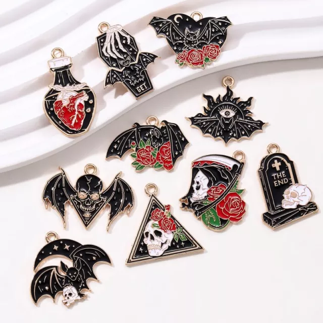 What makes these enamel charms special is their unique mix of dark beauty and playful design. They’re not just accessories — they’re conversation starters. Whether you’re crafting for yourself or selling your creations, this charm set offers the perfect mix of creepy and cute. Let your creativity go wild and design pieces that reflect your inner goth or Halloween lover.