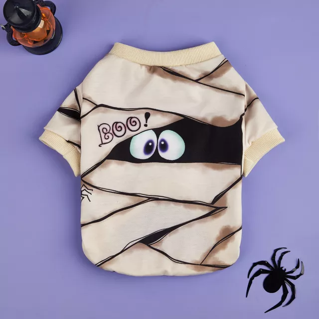 Get your pet ready for a spooky night of fun with our adorable Halloween Pet Mummy Costume! Designed for both dogs and cats, this cute outfit features a charming bandage design that will make your pet the center of attention during all your Halloween festivities. Whether it’s for trick-or-treating, a costume party, or simply festive photos, this short-sleeved top will keep your pet looking cute and stylish!